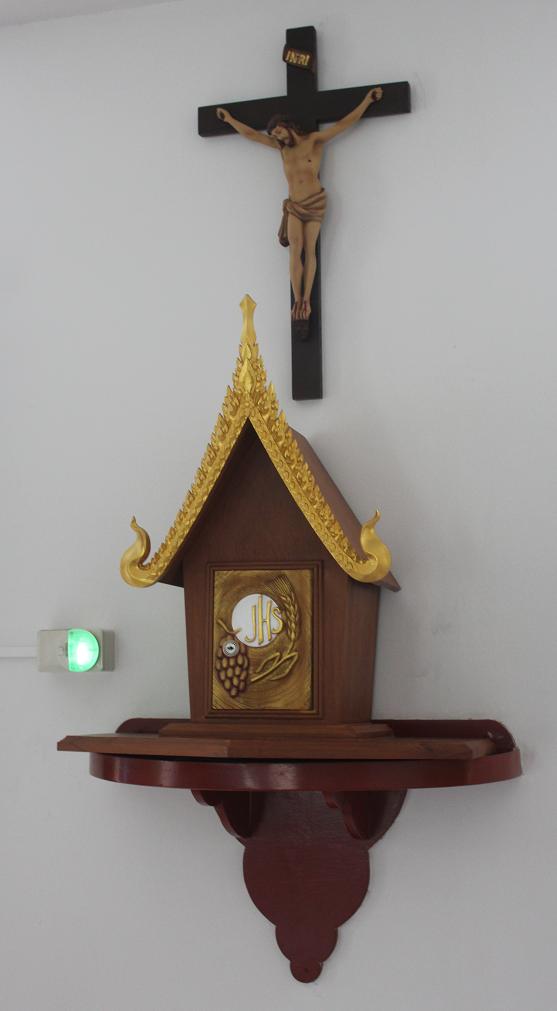 Tabernacle at the chapel of the Redemptoristines in Minburi, ThailandIt is the payoff of divine love. There, Jesus gives us not only his merits, his sorrows, but He also gives Himself to us. Only a God could have conceived such a thing, such an intimate union.
