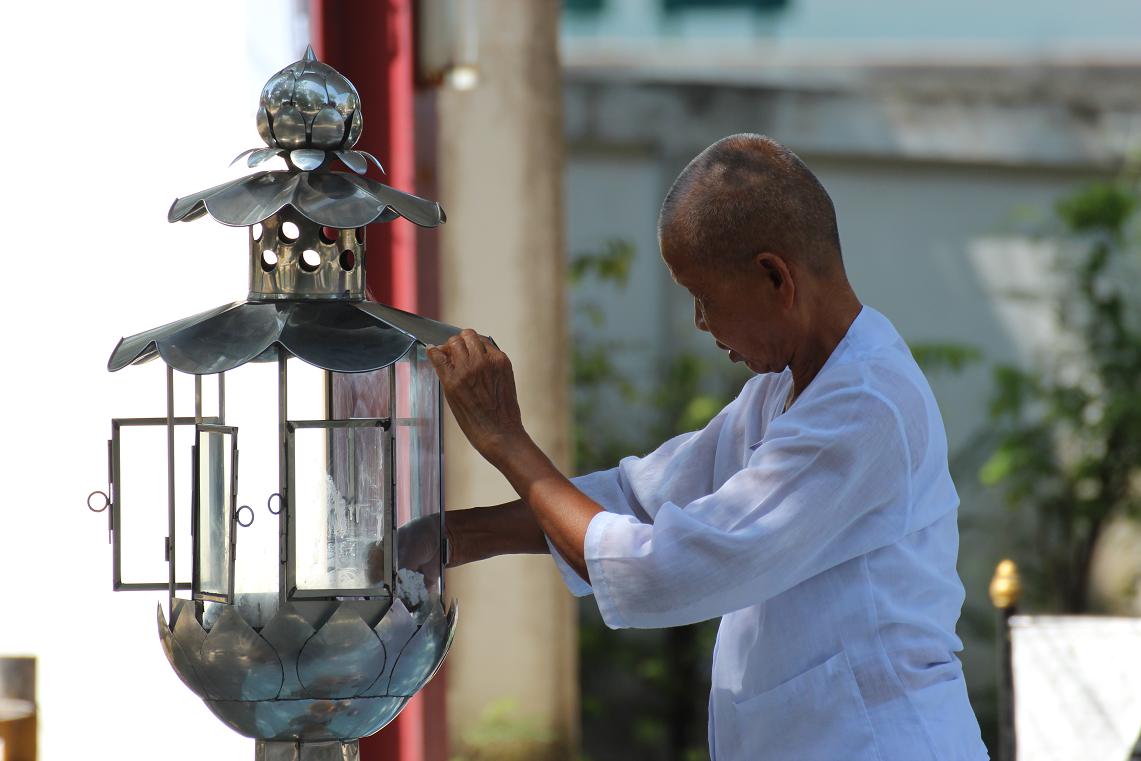 A Buddhist nun (แม่ชี, mae ji) at Wat Ang Sila in Ang Sila, Thailand