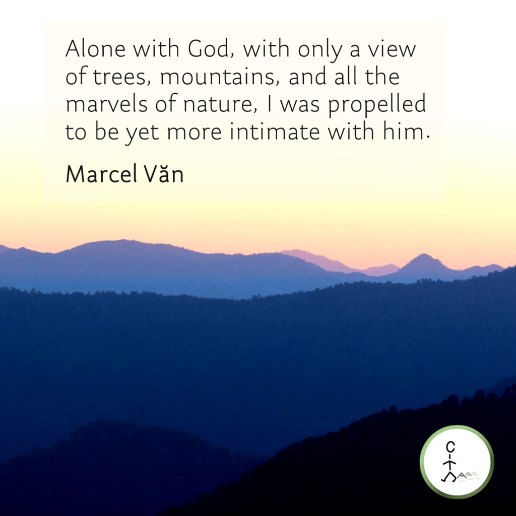 Alone with God, with only a view of trees, mountains, and all the marvels of nature, I was propelled to be yet more intimate with him. — Marcel Văn