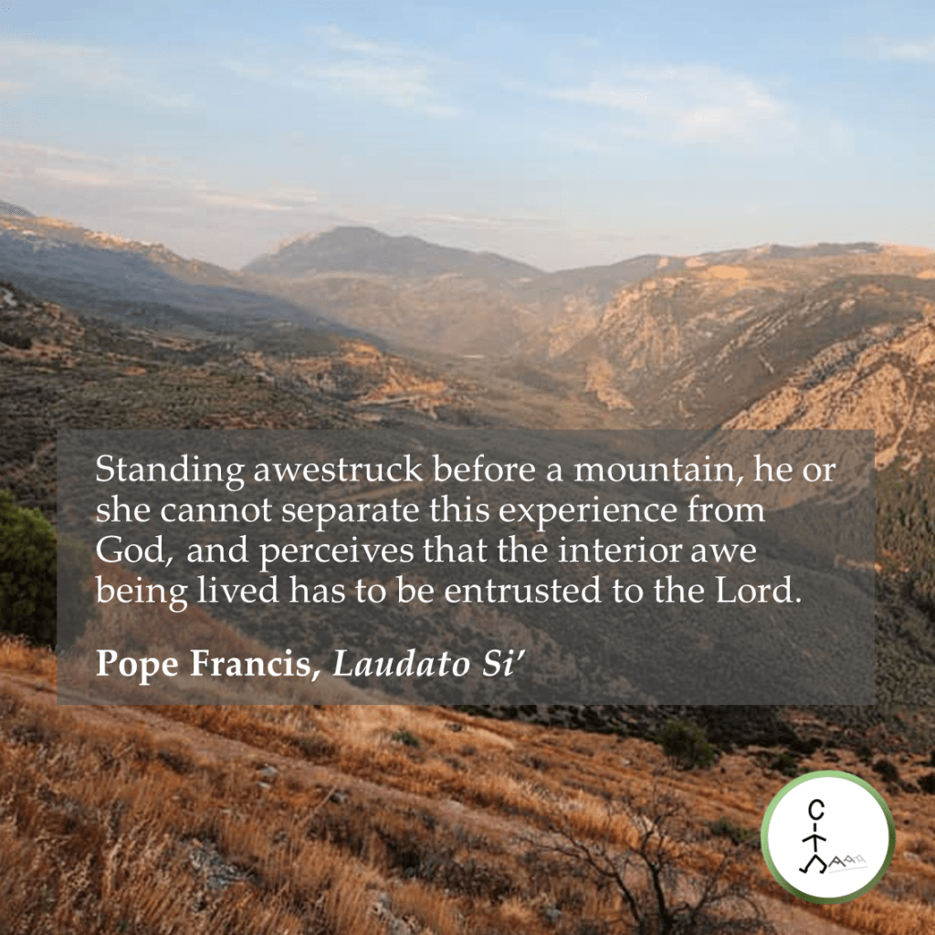 Standing awestruck before a mountain, he or she cannot separate this experience from God, and perceives that the interior awe being lived has to be entrusted to the Lord. — Pope Francis, Laudato Si’ 234