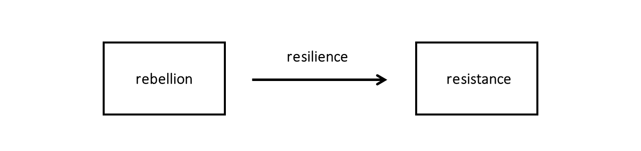 You can imagine it however you want. But I think of it—because I am a chemical engineer by training—like a catalyst. The process of changing sadness into happiness is a catalyst in the process of changing rebellion into resistance. You can’t have the second without the first, or at least, if you try to, it will take eons longer to get things going. Yet I treat a process itself as a catalyst, not the “joy” or the “suffering,” because I think Marcel thinks about time and processes. He doesn’t think that “joy” as a thing or “suffering” as a thing is going to affect any change in his behaviour. Only grace and his behaviour itself will positively affect his behaviour. There may be a better way to sketch this than what I’ve come up with. But whatever that way is, it needs to show that the first grace continually speeds up and deepens the second. And it needs to show that process affects process. There’s no solid, stable, static thing that determines process, at least in Marcel’s thinking.