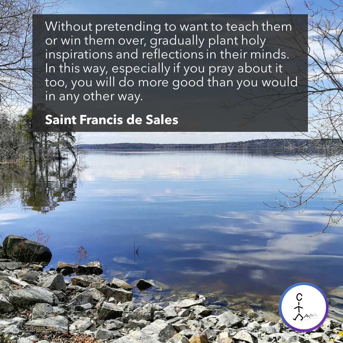 Without pretending to want to teach them or win them over, gradually plant holy inspirations and reflections in their minds. In this way, especially if you pray about it too, you will do more good than you would in any other way. — Saint Francis de Sales