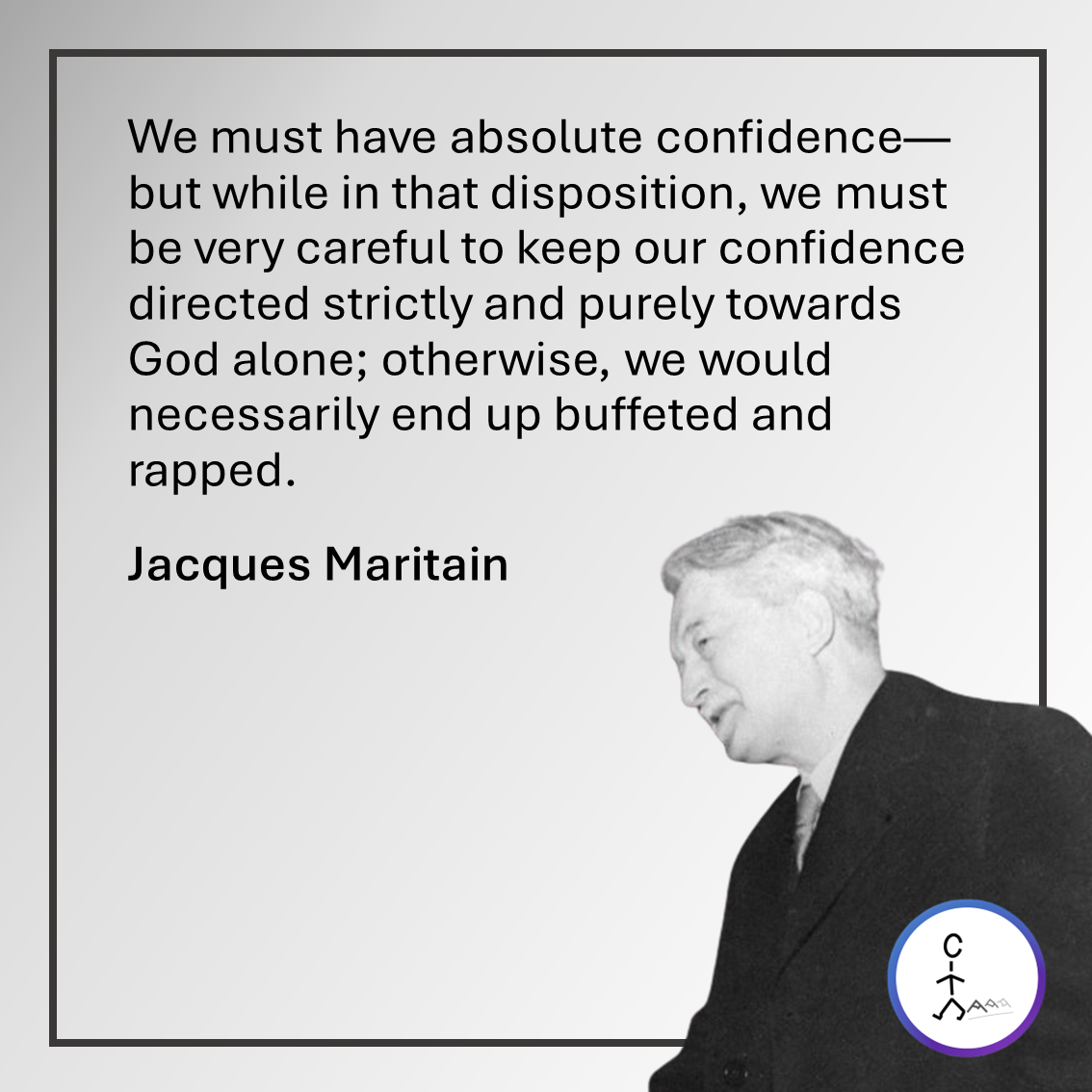 We must have absolute confidence—but while in that disposition, we must be very careful to keep our confidence directed strictly and purely towards God alone; otherwise, we would necessarily end up buffeted and rapped. — Jacques Maritain