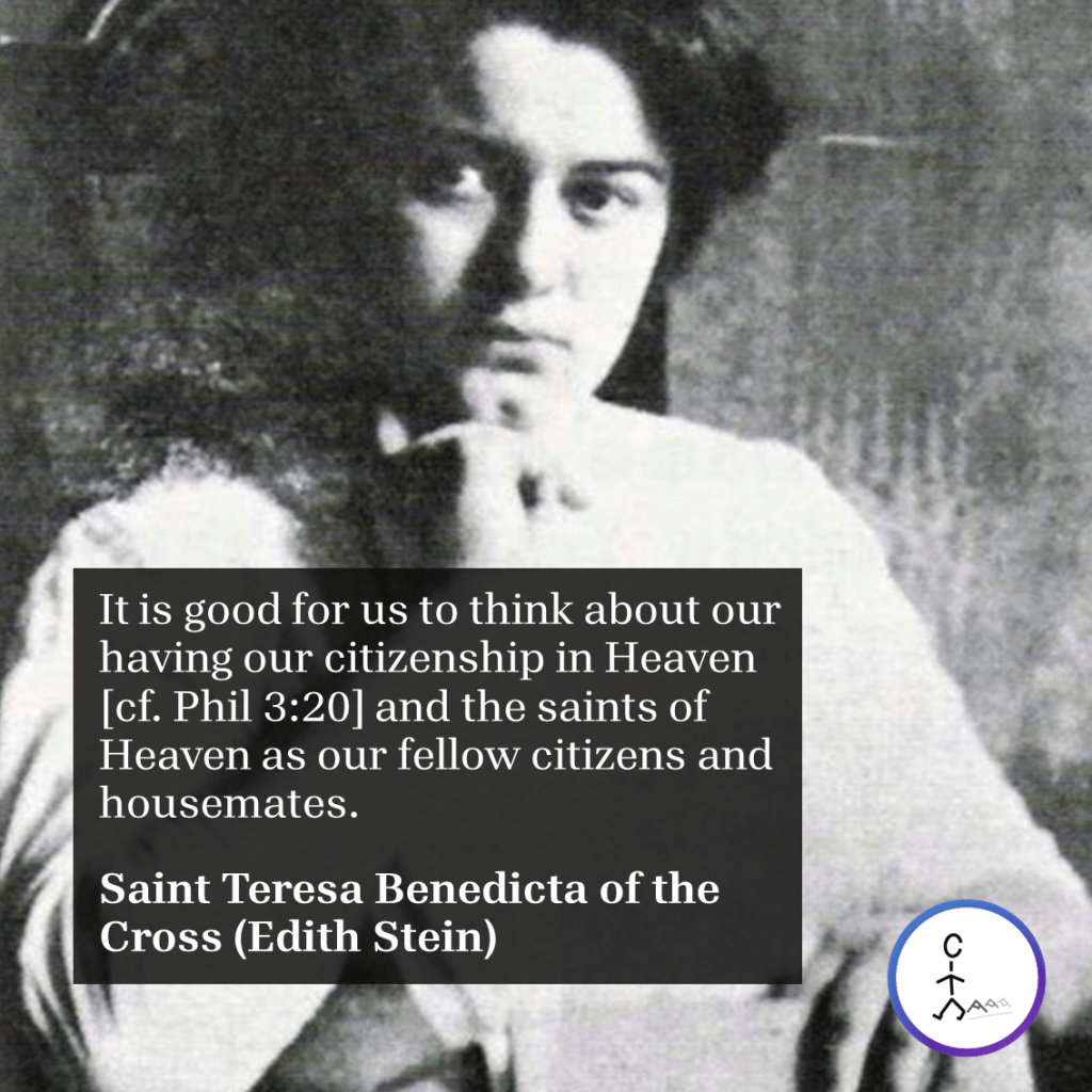 It is good for us to think about our having our citizenship in Heaven [cf. Phil 3:20] and the saints of Heaven as our fellow citizens and housemates. — Saint Teresa Benedicta of the Cross (Edith Stein)