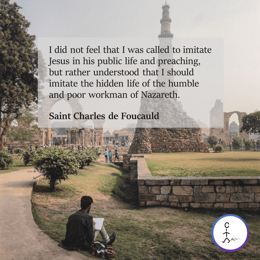 I did not feel that I was called to imitate Jesus in his public life and preaching, but rather understood that I should imitate the hidden life of the humble and poor workman of Nazareth. — Saint Charles de Foucauld