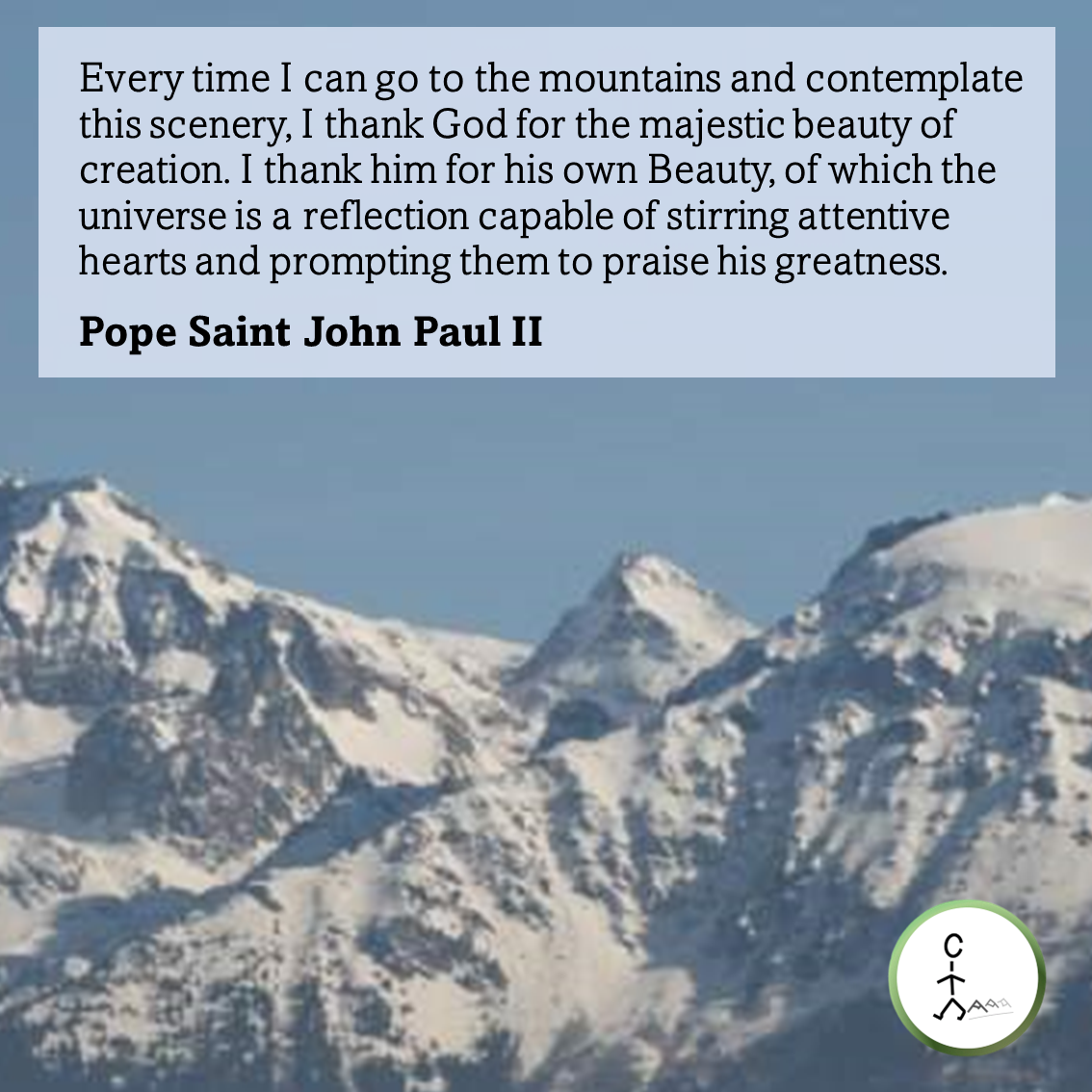 Every time I can go to the mountains and contemplate this scenery, I thank God for the majestic beauty of creation. I thank him for his own Beauty, of which the universe is a reflection capable of stirring attentive hearts and prompting them to praise his greatness. — Pope Saint John Paul II