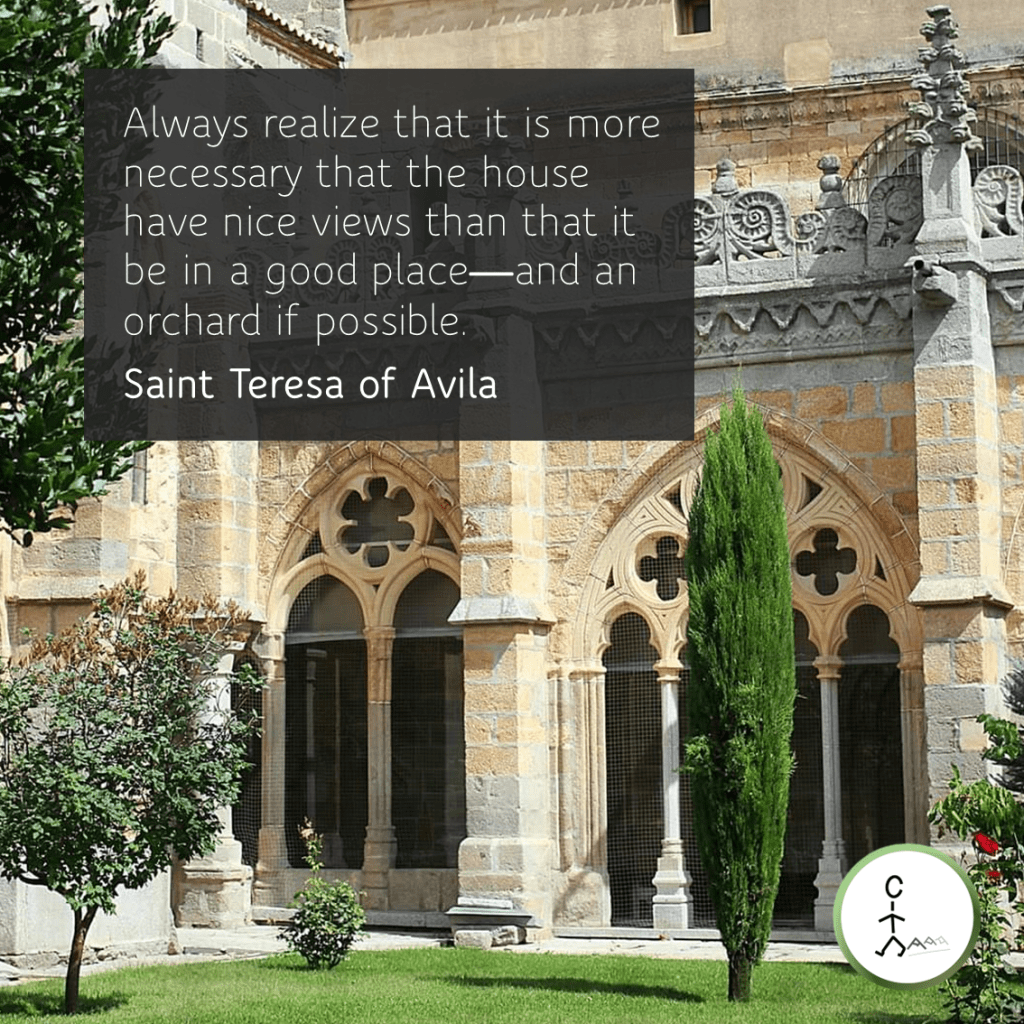 Always realize that it is more necessary that the house have nice views than that it be in a good place—and an orchard if possible. — Saint Teresa of Avila