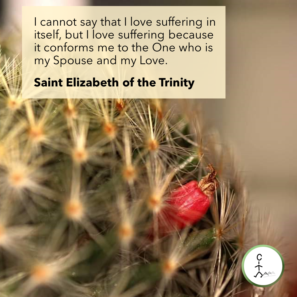 I cannot say that I love suffering in itself, but I love suffering because it conforms me to the One who is my Spouse and my Love. — Saint Elizabeth of the Trinity