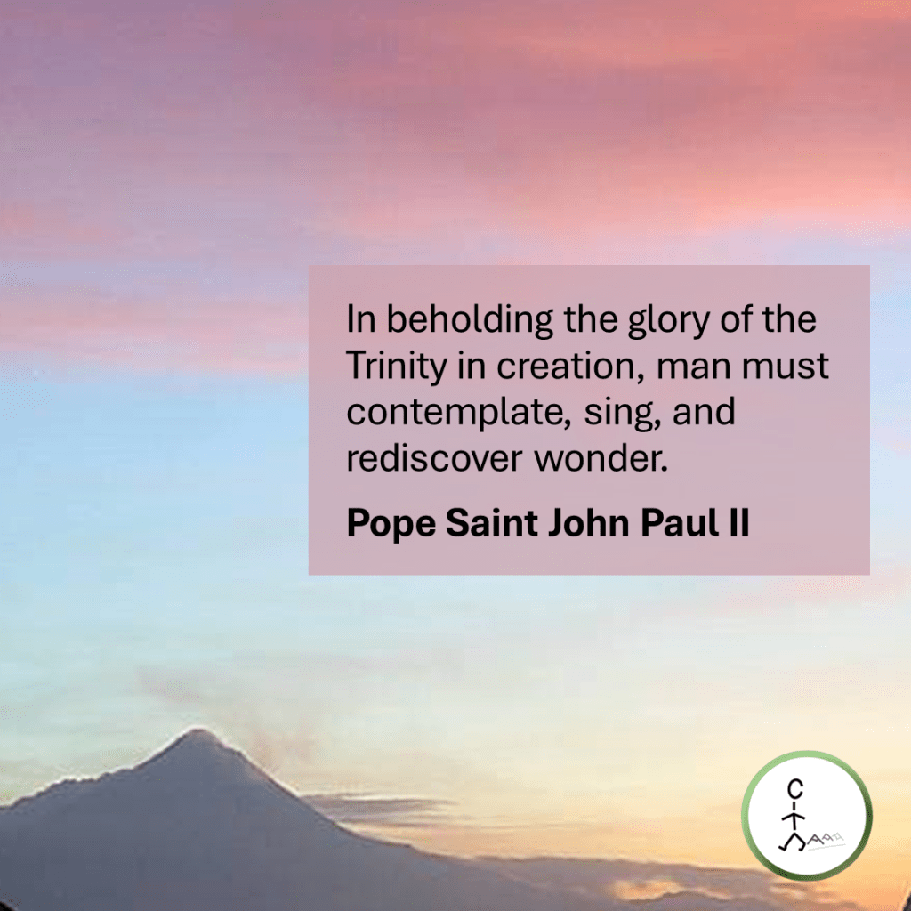 In beholding the glory of the Trinity in creation, man must contemplate, sing, and rediscover wonder. — Pope Saint John Paul II