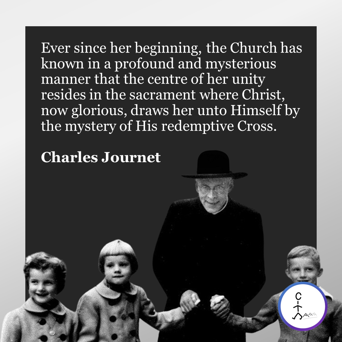 Ever since her beginning, the Church has known in a profound and mysterious manner that the centre of her unity resides in the sacrament where Christ, now glorious, draws her unto Himself by the mystery of His redemptive Cross. — Charles Journet