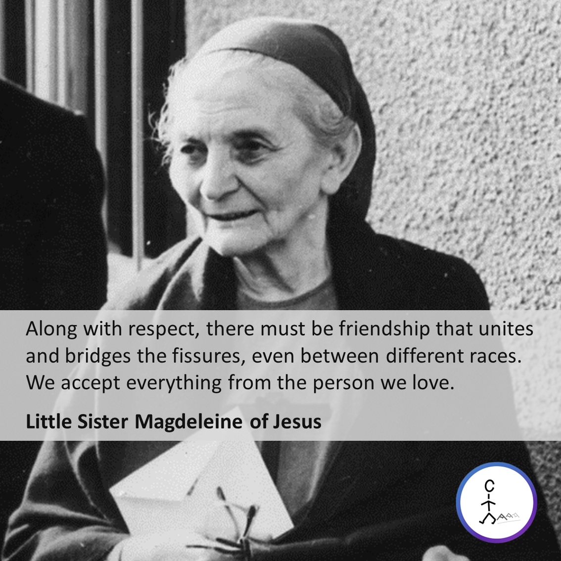 Along with respect, there must be friendship that unites and bridges the fissures, even between different races. We accept everything from the person we love. — Little Sister Magdeleine of Jesus