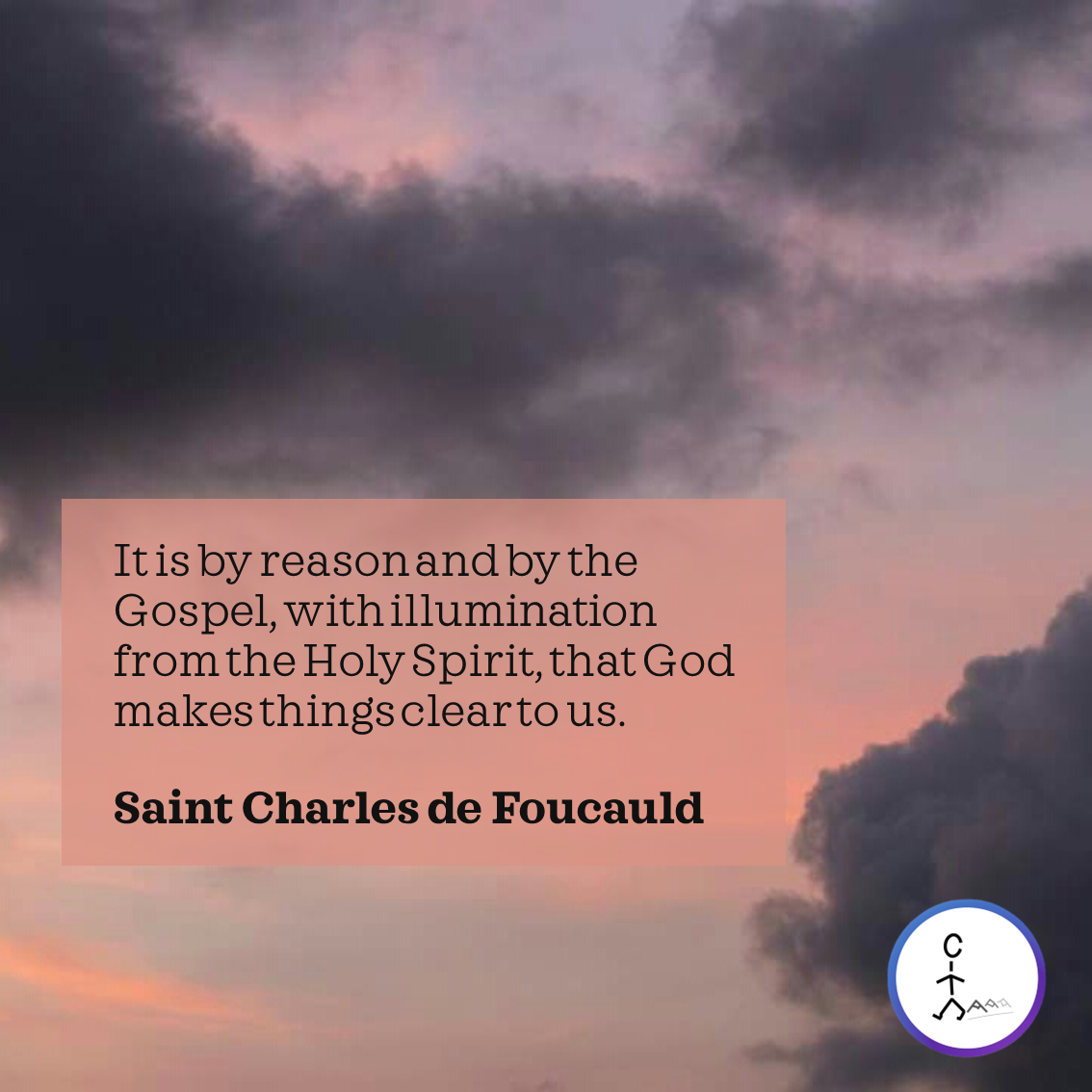 It is by reason and by the Gospel, with illumination from the Holy Spirit, that God makes things clear to us. — Saint Charles de Foucauld