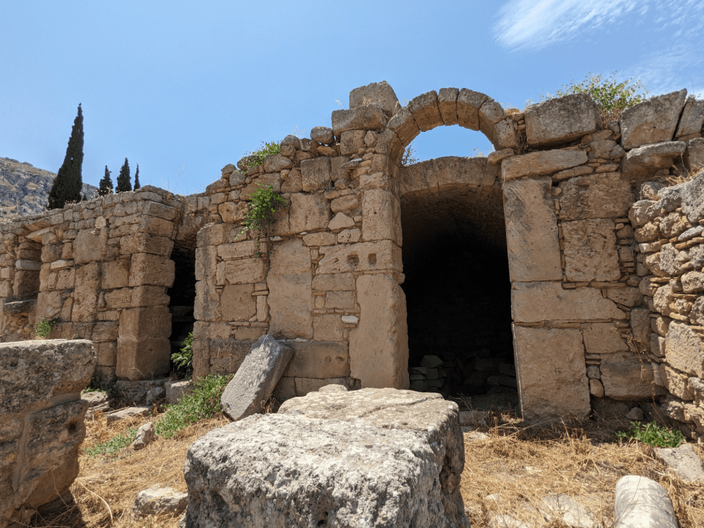 I wonder how many early meetings of Christians took place in these rooms. Leatherworking is a relatively quiet occupation, so maybe the trio laboured and taught passersby at the same time. Or maybe when the day’s business was over, Christians were meeting in places like this for their “house church.” At any rate, Prisca and Aquila were evangelizing by presence and charity as they laboured there. There is a lot to ponder.